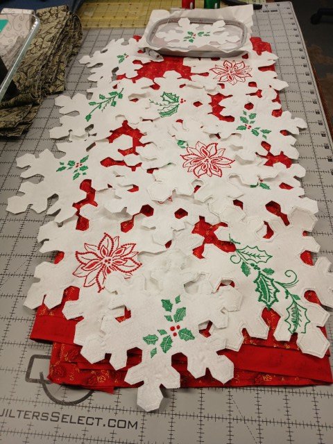 I see it all happening and that is as much as it is bothering me. I enjoyed two cups of coffee before heading down into the studio. Today I succeeded in putting what was started decades ago, a 2025 fruition. My mom, Lena, loved her threads and fuzz. That is most likely where I shared that love then and right into today. I don’t know what mom’s intent was as she stitched together layer upon layer of prairie points. Prairie point: a square of fabric folded several times ending with a self-contained point. Often mom would use them to edge her quilts with the intent that grubby little hands would put wear and tear on the points and not the quilt edge. These three items held many hand stitched stitches to hold the points in place making for a quilter’s design.