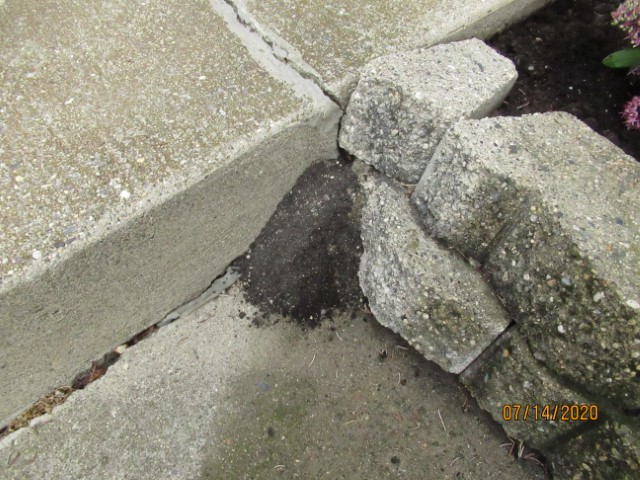 Cicada-NestAs I was blowing off the drive, I noticed a fresh pile of dirt at the corner of the flower bed on the southeast corner of the house.  Hmm.  That was not there on Sunday and here it is Wednesday.  It gave the appearance of an ant hill.  Something has been busy.  When I put in the plants at this flower bed, there had been the same pile of fresh dirt within the bed.  I had a sneaky feeling it was the female Cicada Wasp who’s nest I had destroyed just two weeks ago when I dug out the flower bed.  Why on earth do we need a wasp that tunnels and make nests in dirt.  Dennis sprayed hornet spray into the little opening until it welled out in a white foam.  Out she came and buzzed off.  The Cicada is huge and has orange strips on her back.  I got out the vinegar jug.  When I had looked it up on the internet, that was one suggestion to discourage the wasp.  After the foam of the spray disappeared, I poured pure vinegar into the area and in between where the step and one of the pavers were.  I am going to continue trying to move her somewhere else.  With that being said, I need to go back onto the internet and do a bit more research.  Tomorrow I will clean up this pile of dirt and check back to see if there has been any fresh activity.