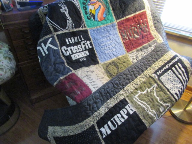I have had a good run in the studio that was quite timely. The old adage that no good deed goes unpunished does have a ring of truth; being tuckered. Yesterday the close of the day found the tee-shirt quilt folded. Done!